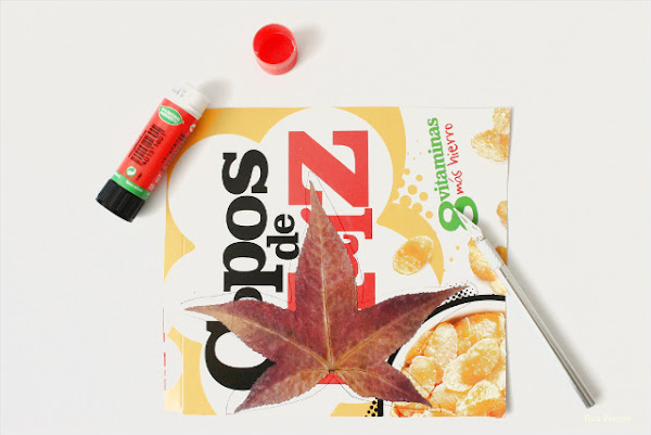 - Hojas secas prensadas. De todas las formas, tamaños y colores que quieras. Para prensarlas ponlas entre dos hojas de periódico con peso encima (una pila de libros por ejemplo).