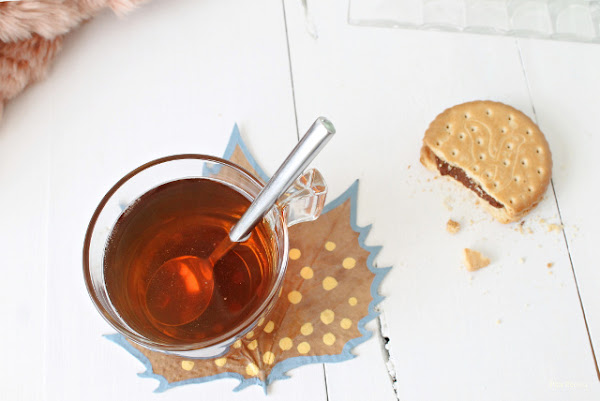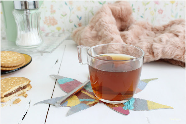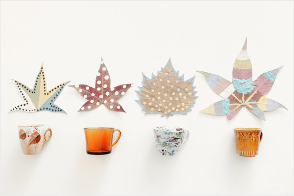 Tengo una buena colección de tazas y allí donde me instalo con una, llevo también su correspondiente posavasos. Los últimos que he hecho encajan muy bien en la época que estamos y me gustan especialmente porque #laniña colaboró conmigo. Son diy y están hechos con hojas secas pintadas: