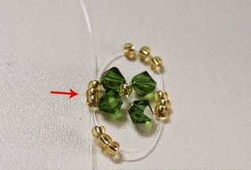 6-Seguimos con el hilo de pescar y las piedras pequeñas doradas.