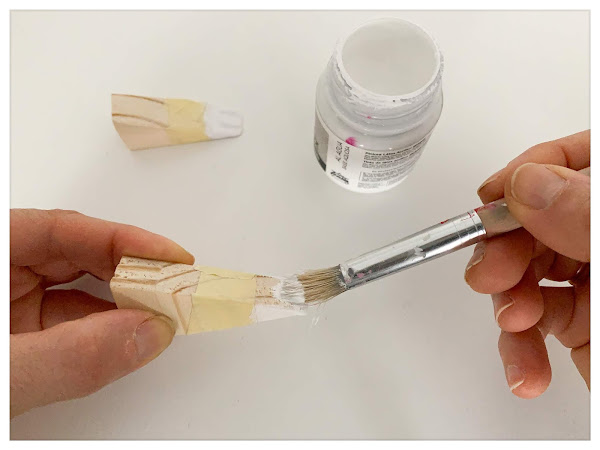 Pintar con pintura de color blanco acrílica, una parte del extremo mas fino, delimitando con cinta de carrocero la zona a pintar.