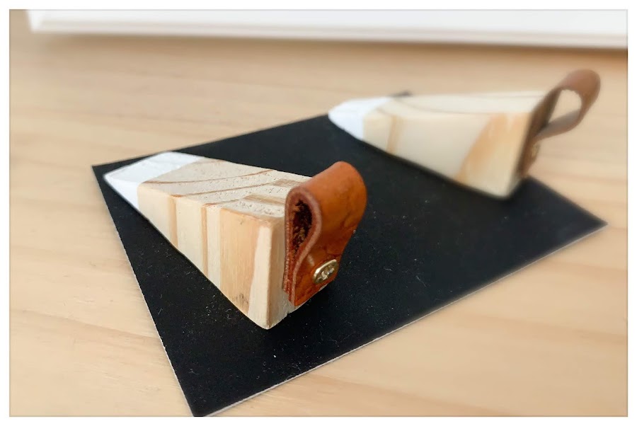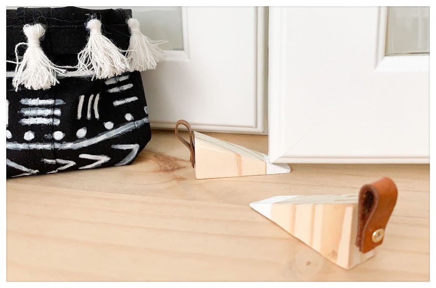 La tercera idea que he diseñado son unas cuñas tope o sujeta-puertas de diseño minimalista , con un toque de estilo decorativo muy nórdico, que está de super actualidad en decoración. Para ello he utilizado utilizado la misma cinta de cuero que utilicé en la pulsera y el anillo.