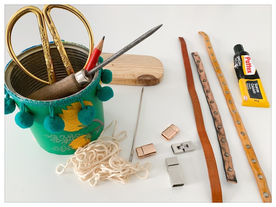 Tres elementos muy diferentes hechos y diseñados a partir de un mismo material, la cinta de cuero ¿Te a mimas hacerlo tú?