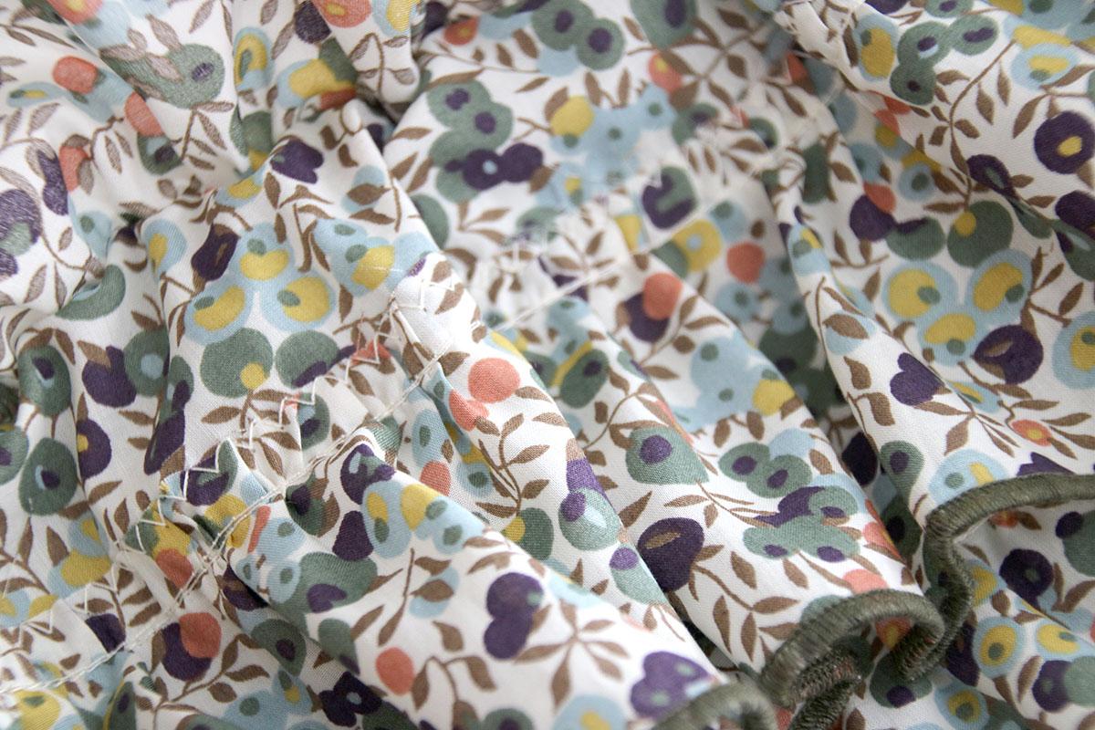 La tela es un estampado Liberty original, de la tienda Liberty de Londres que compré a través de TiendaTelas.com Estos estampados al tener marca propia son más caros que los algodones que encontramos normalmente, pero al ser exclusivos de esta tienda son ellos quienes ponen los precios y siempre suelen estar al mismo precio.
