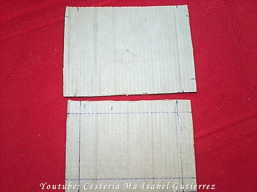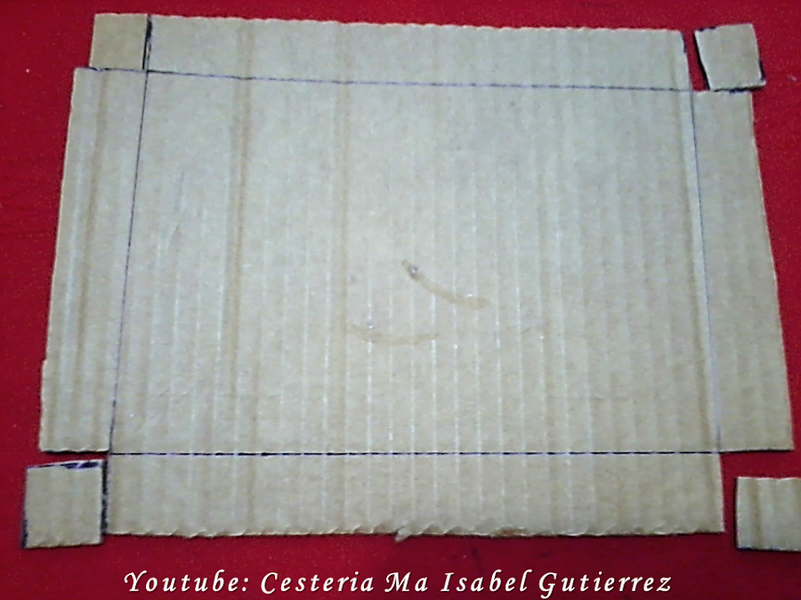 Como primer paso, cortamos dos rectángulos, el tamaño es opcional de acuerdo al tamaño que desees hacer las cajitas. Yo corté uno con medidas de 14 x 19 centímetros, y el otro de 14.5 x 19.5 centímetros. El medio centímetro de más es para que la cajita de arriba entre perfecto en la mas pequeña... Vamos a marcar dos centímetros hacia dentro de cada esquina como se ve en la imagen, y a partir de estas marcas, delineamos líneas formando otro rectángulo dentro, éste será la base de las cajitas...