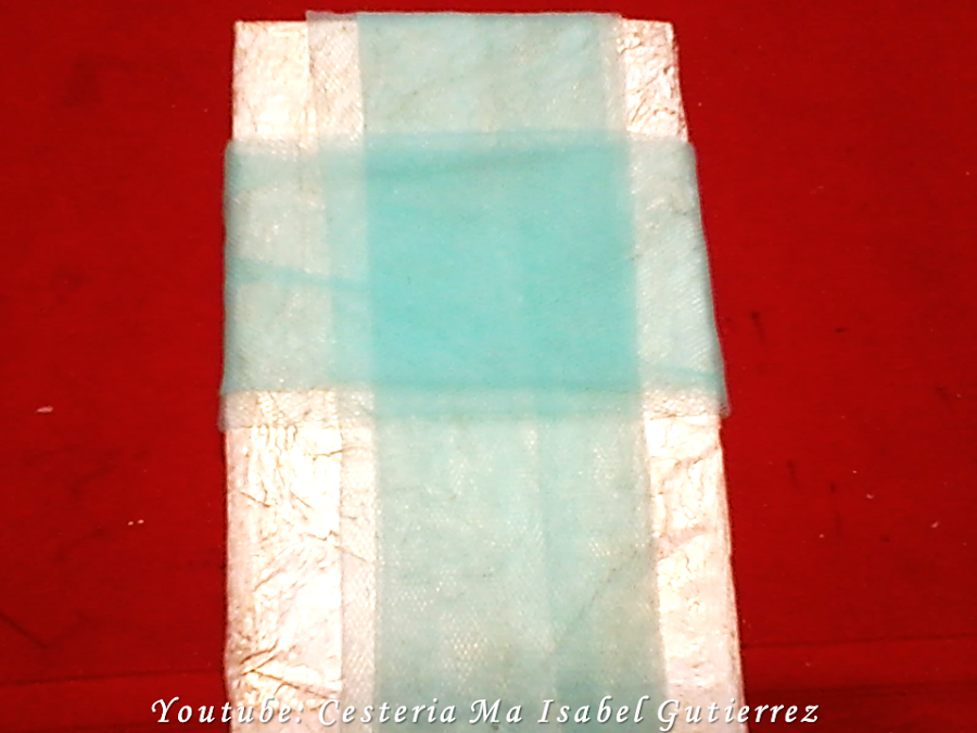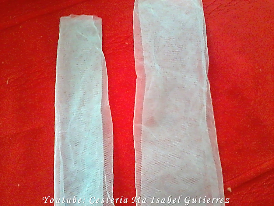 Aparte, cortamos dos tiras de tela vaporosa o de tul suave y fino, hacemos unos 3 o 4 dobleces como se ve en la imagen...