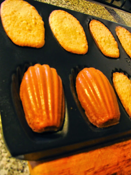 En la foto de la derecha, están las primeras madeleins que hice... como pueden ver...el resultado no fué nada halagador....quedaron sin color...apelmazadas...entre otras cosas...pero aún con eso....como quiera volaron...jiji...