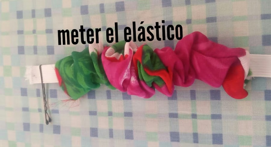 Con ayuda de un pasador de cabello pásalo por el tubo de tela que hiciste, cuando saques el extremo del elástico amárralo o cóselo donde pusiste la marca.