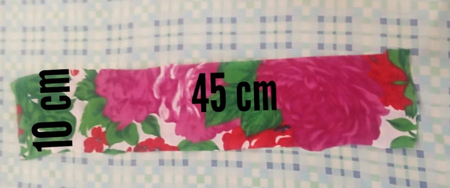 Mide en tu tela un rectángulo de 45cm largo por 10 cm de ancho luego córtalo