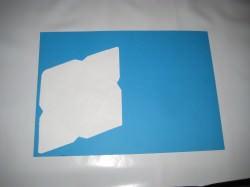 Si eres hábil con las tijeras puedes sujetar los dos papeles a la vez y recortarlo directamente. Si te resulta dificil, dibuja el contorno con un lápiz y recortalo después.