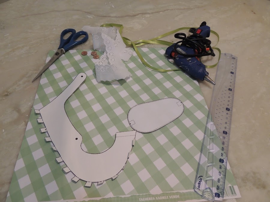 Perforamos las dos partes juntas, para luego pasar una cintita o el festón para dar la terminación.