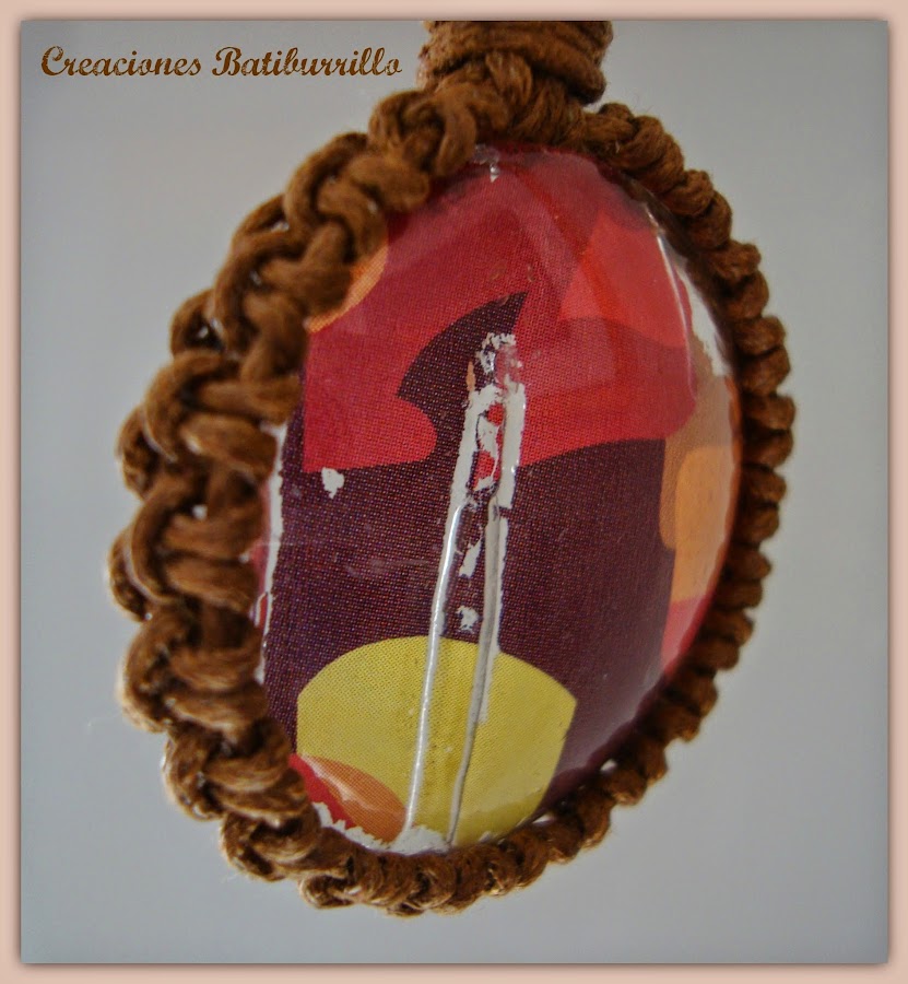 Como veis en las fotos finales, por el derecho se ven todos los nudos con unos moñitos que sobresalen y por el revés se forma un canal que deja espacio para introducir el borde del colgante.