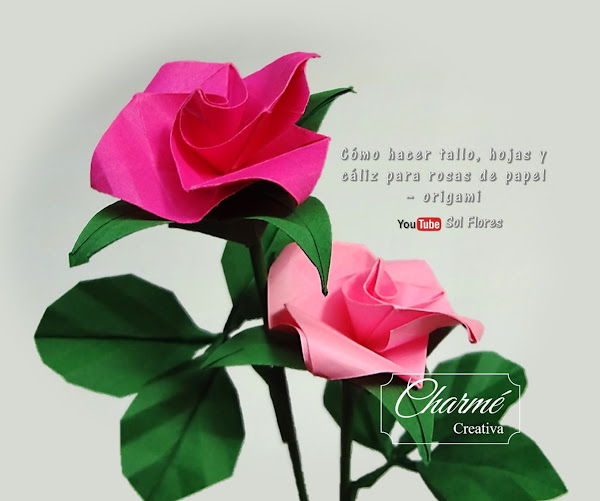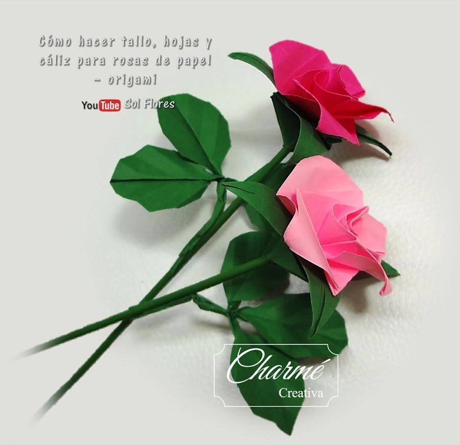 Cómo hacer tallo, hojas y cáliz para rosas de papel origami