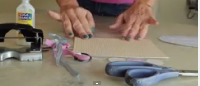 Perforamos cada una de las etiquetas que recortamos, y pasamos una cinta bebe por cada una de ellas.