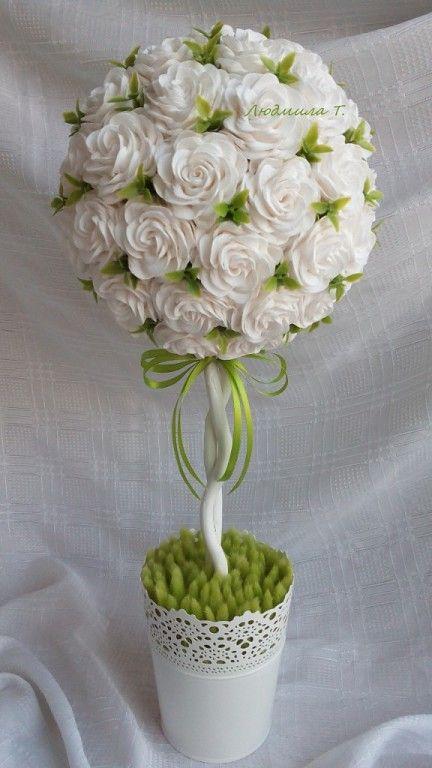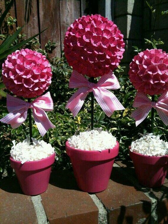 4.- Pega las flores en la superficie de la esfera, comenzando por la parte de arriba.