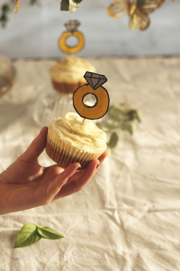 Espero que esta sencilla idea te sirva de inspiración para montar tu propia fiesta Los anillos en las bodas y fiestas de pedida ( engangement party ) están de moda . Si decides ponerla en práctica, no olvides etiquetarme en tus redes sociales para poder ver esos super anillos y te espero el próximo lunes con la receta de estos jugosos cupcakes .