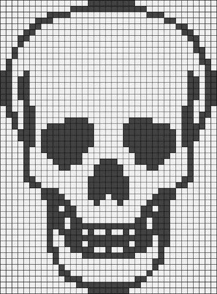 Con este gráfico que verás a continuación fue con el que hice mi bolso. Primero elegí una calavera, la modifiqué a la forma que quería darle (delimité el nuevo contorno y rellené de cruces la parte que quería), pensando en la forma que le daría al nuevo bolso y calculando los puntos para intentar cuadrar varias calaveras alrededor de él (por cierto, que sigo siendo malísima con las medidas).
