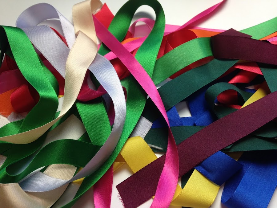 Como ven tengo muchísimas cintas guardadas, de raso, falletina, de distintos anchos y largos