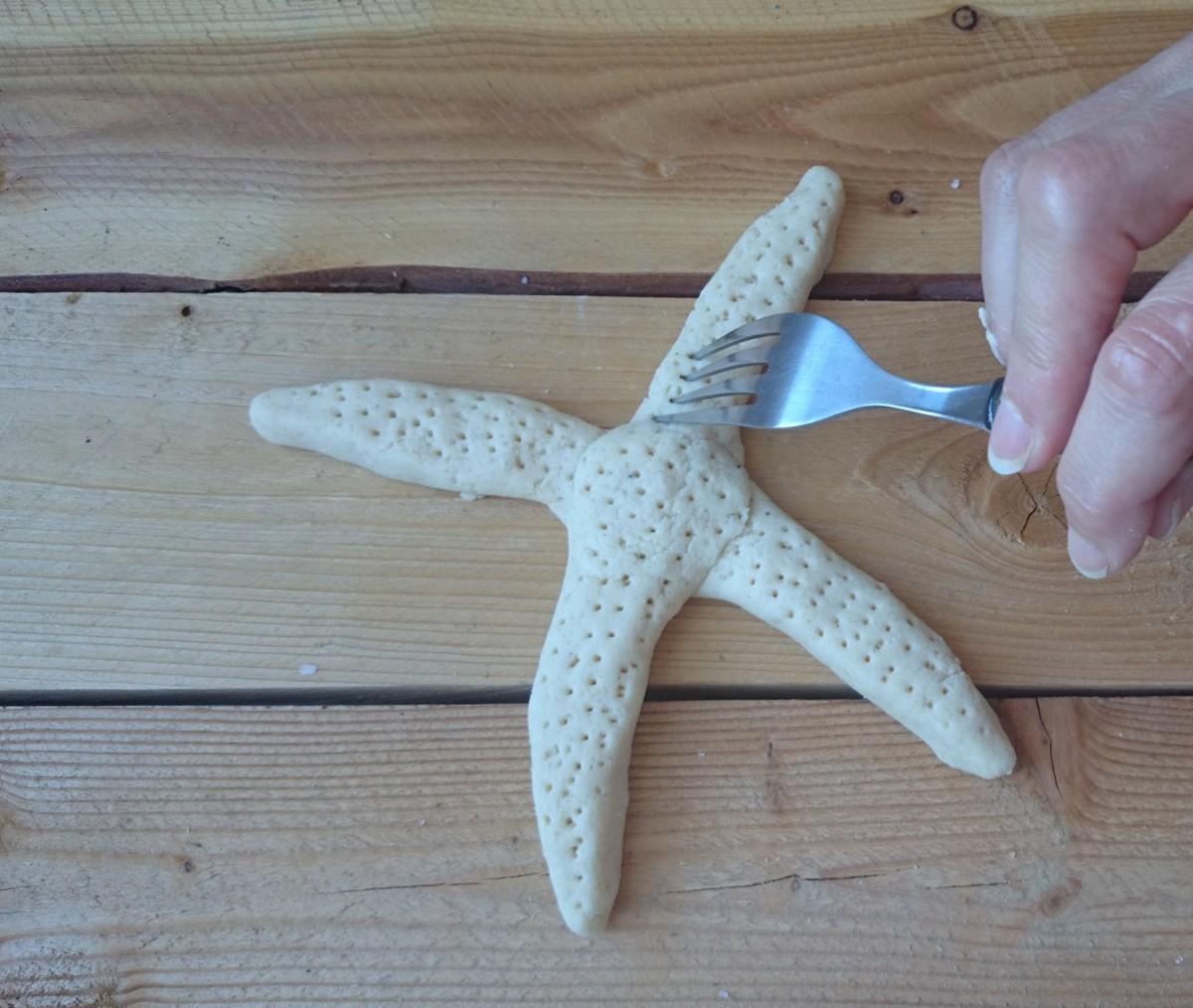 Cuando este modelada nos servimos de un tenedor para hacer agujeritos, imitando a la textura de la estrella de mar.