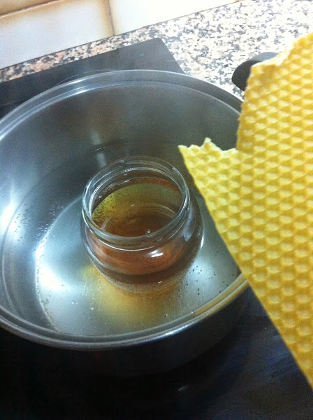CERA DE ABEJA; En el caso de las pinturas industriales ( las compradas) esta parte la cubriría una especie de gel especial. Nosotros utilizaremos la cera de abeja que es la que nos dará corporeidad. No hay que poner en exceso.