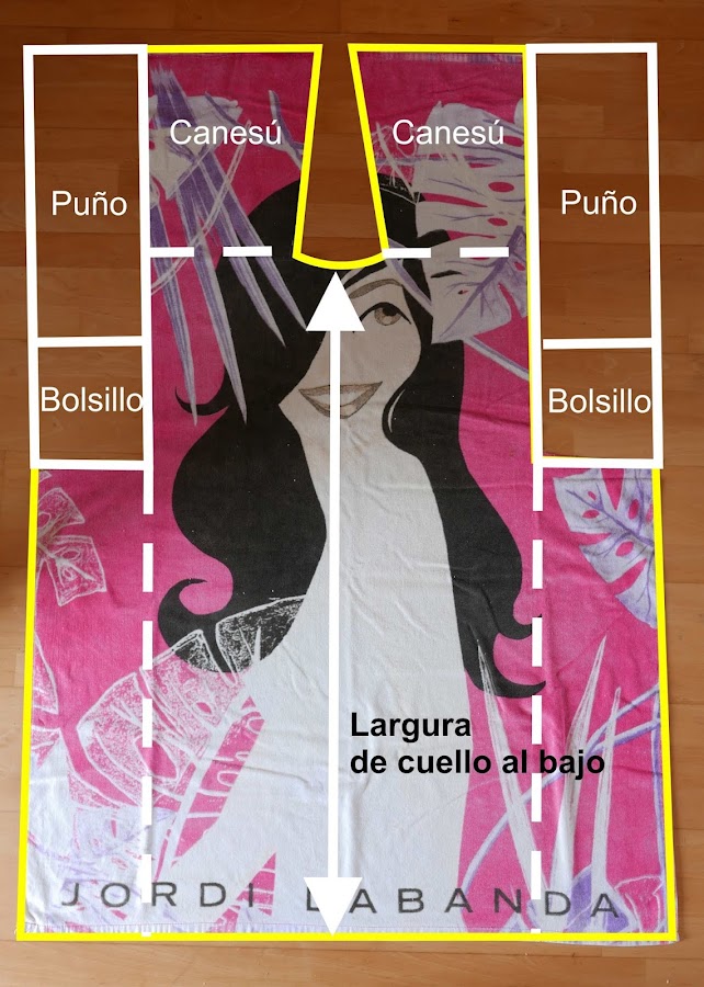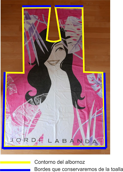Lo cierto es que todo nace de la necesidad, me hacía falta un albornoz nuevo y antes de ir a por él a una tienda, preferí ir al armario y darle uso a una toalla que ya no iba a usar, pero que estaba cargada de buenos recuerdos. Tal cual no me iba a cubrir, ya que debía tener un largo por la rodilla y las mangas tampoco me hubieran salido, pero combinando todo es posible.