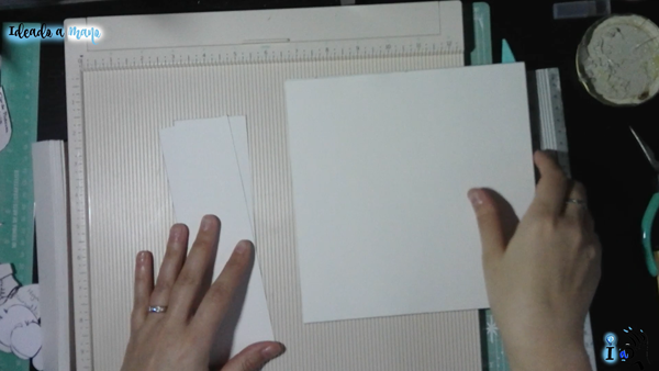 Comenzamos con cartulina. Yo he recortado 10 hojas de 20x20cm y 11 trozos más de 20x6cm. Si queréis cambiar las dimensiones de vuestro álbum lo que tenéis que tener en cuenta es que los fragmentos tienen que tener el mismo alto que la hoja y el mínimo de 6cm de ancho. Y siempre tienes que tener u trozo de esos más que hojas quieras.