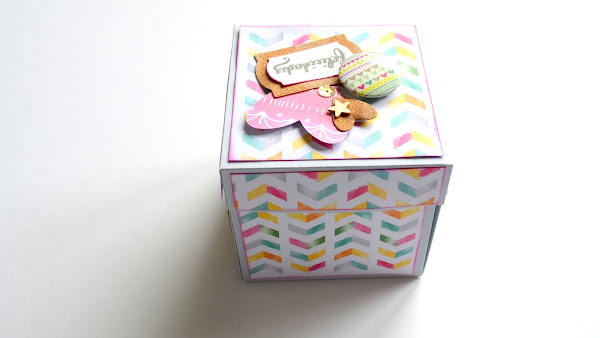 - Papeles decorados (también se pueden usar más cartulinas de colores): 1 cuadrado de 28,8 x 28,8 cm y otro de 27,9 x 27,9 cm.