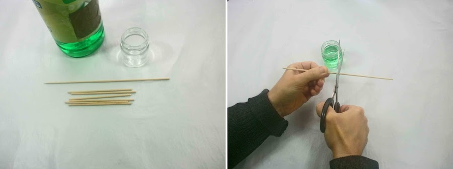 TijerasBueno, pues como he mencionado anteriormente en los materiales, el producto que usamos es un fregasuelos. Elige el olor que te guste, rellenas el tarrito, cortas unos palitos de madera por la mitad y listo. Si quieres, puedes decorar el tarrito. Cada vez que quieras potenciar el olor, sólo tienes que dar la vuelta a los palos de madera.