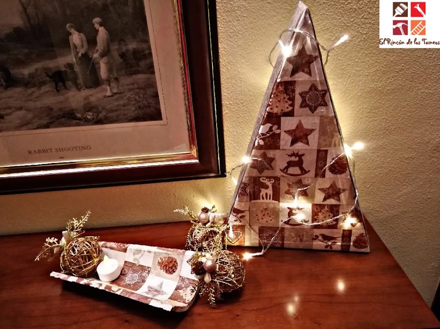 Y ahora sí, no sé vosotras pero yo estoy deseando ver todos los trabajos...pero antes.....os presento mi aportación, un árbol navideño hecho con cartón, como las letras que hice para una boda, os pongo AQUI el enlace por si queréis recordarlo ya que he utilizado la misma técnica.