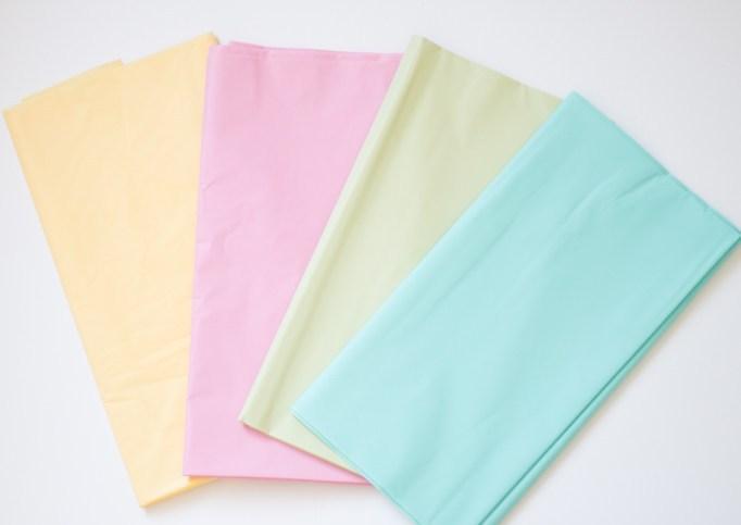 En este caso, el backdrop es muy fácil y rápido de hacer, con materiales sencillos y económicos. Se eligieron colores pasteles, pero eso queda totalmente a tu elección. Debes tener en cuenta el largo aproximado que te gustaría el telón, y el ancho, aunque éste último no debe preocuparte demasiado ya que lo regulas una vez terminado.