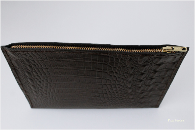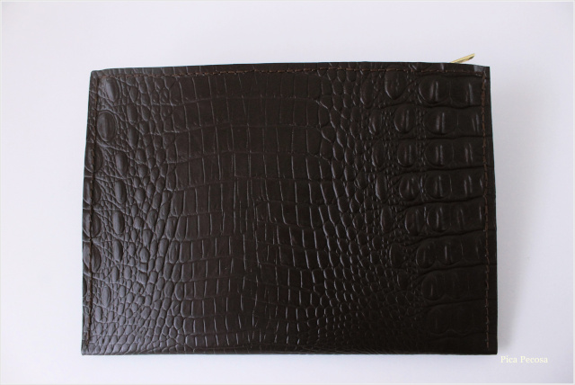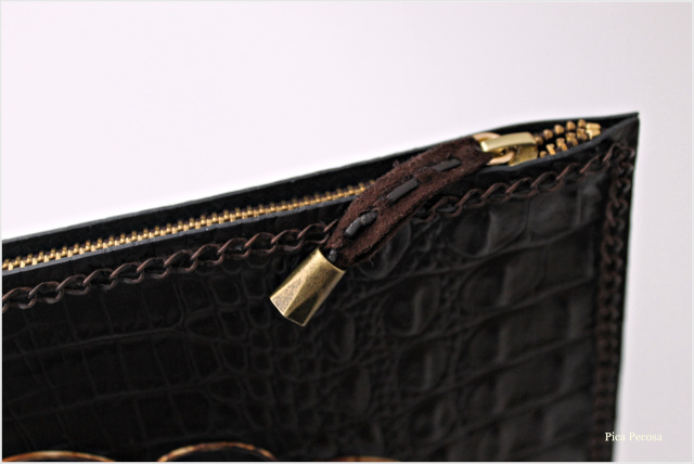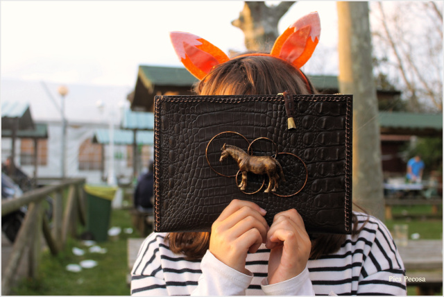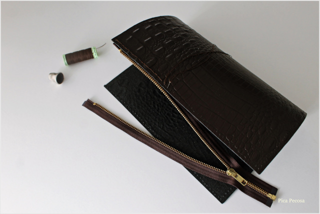Los pendientes y la cebra como tenían poca superficie de contacto, puse entre ellos y la piel un trozo de cuero del mismo color del bolso para que se agarrasen mejor: