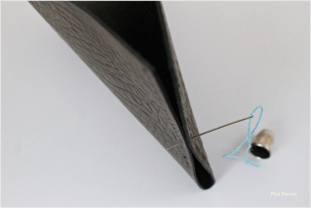 Además quería las costuras lo más cerca posible de éste, lo que me obligó a pasar el hilo a ras de los dientes: