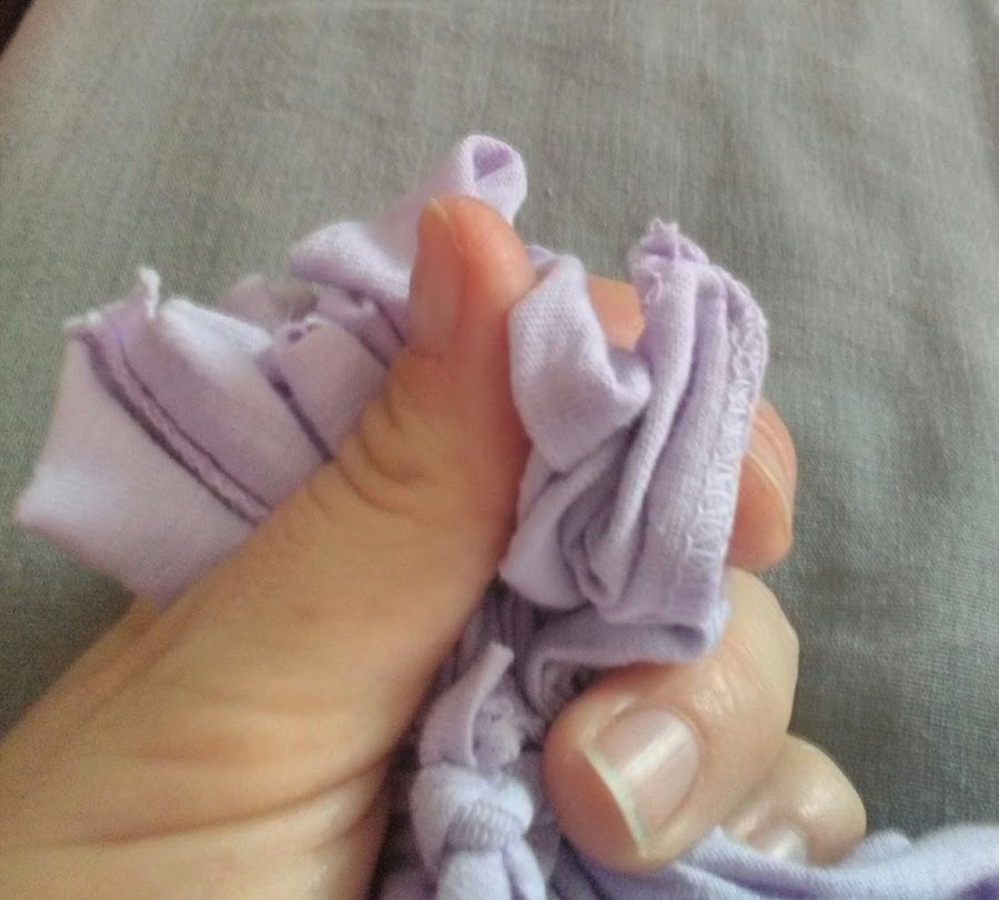Varios retales, de varios colores , de otras camisetas viejas u otras telas que tengamos por ahí