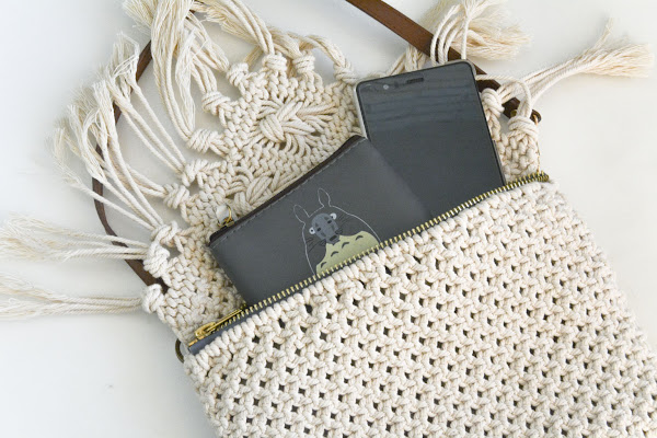 ¿Cómo va ese verano? Yo recién aterrizada pero todavía con unos cuantos días libres por delante para ir haciéndome a la idea. Y justo antes de irme terminé este bolsito tan mono de macramé para poder lucirlo durante las vacaciones. Y la verdad es que me encanta xD. Y es súper sencillo de hacer, como todo lo que os enseño (^-^)