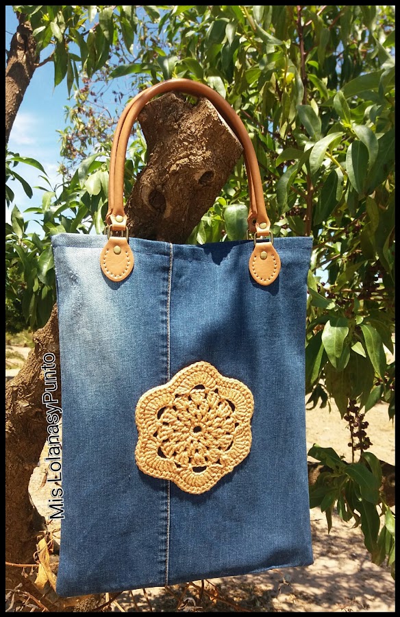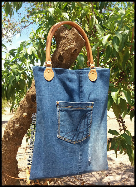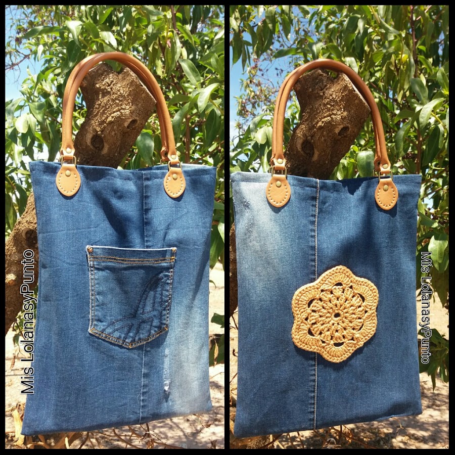 Otra idea que puedes hacer, reciclando unos pantalones vaqueros, es un bolso como este.