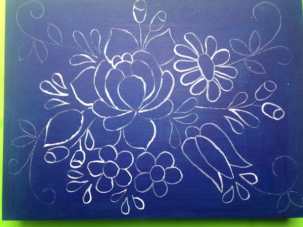 El dibujo lo ideal es pasarlo con un papel carbónico, pero si no lo tienes como fue mi caso, podes con un lápiz de color rayarlo por detrás y lugo pasar una birome y marcarlo. Luego remarcar el dibujo con un pincel finito y pintura acrílica un poco más diluida.