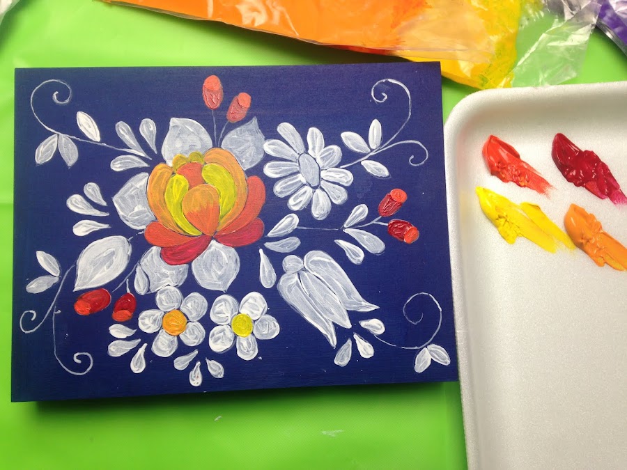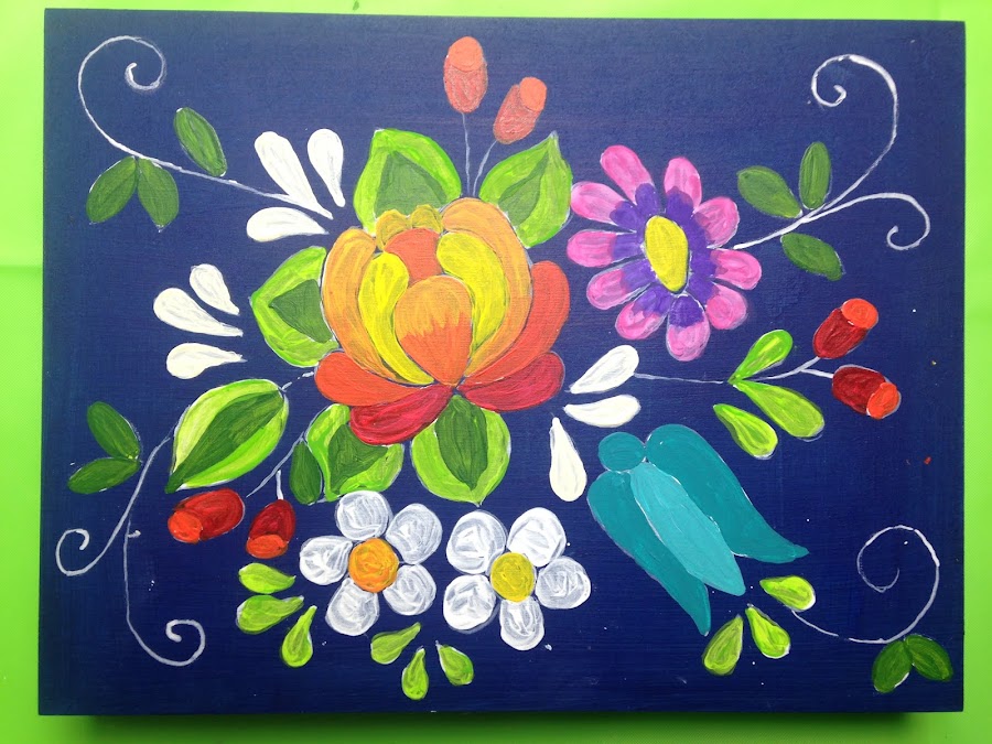 Se va completando de esa manera todo el motivo y cuando se cubrió toda la superficie y esta todo seco se lo protege con una mano de barniz acrílico mate o brillante.