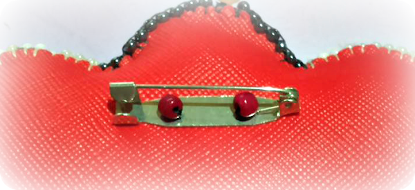 De esta manera , si con el uso se rompiera el hilo en algún punto del broche, no pasaría a males mayores pues los hilos está todos pegado por detrás, simplemente se arregla es desperfecto con unas puntaditas y el abalorio que se ha soltado y arreglado.
