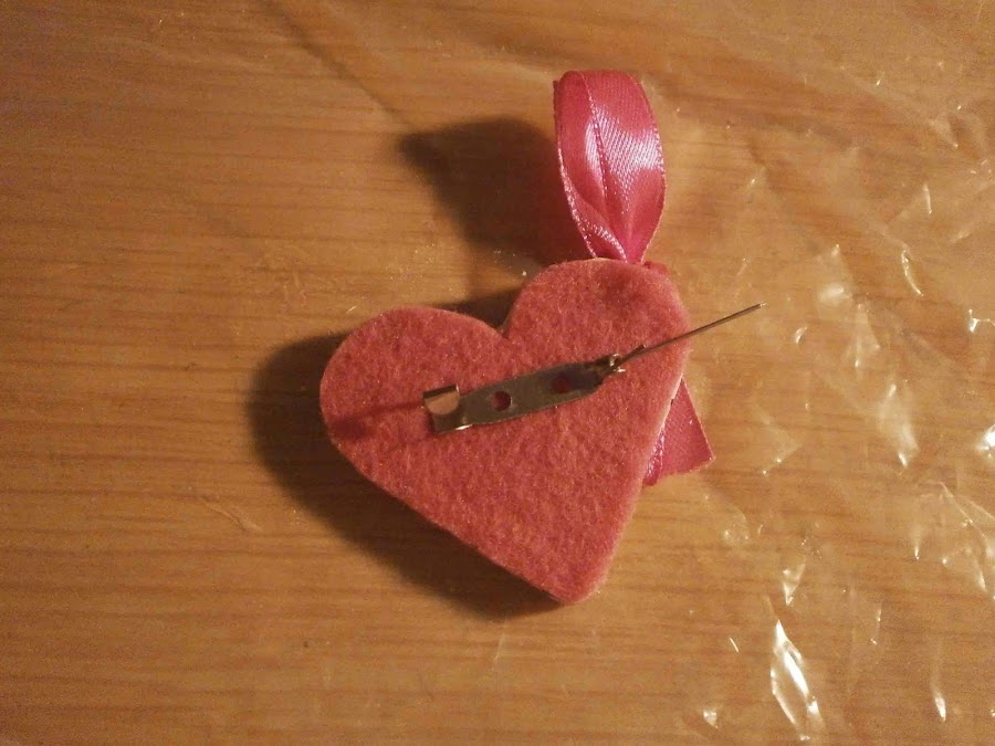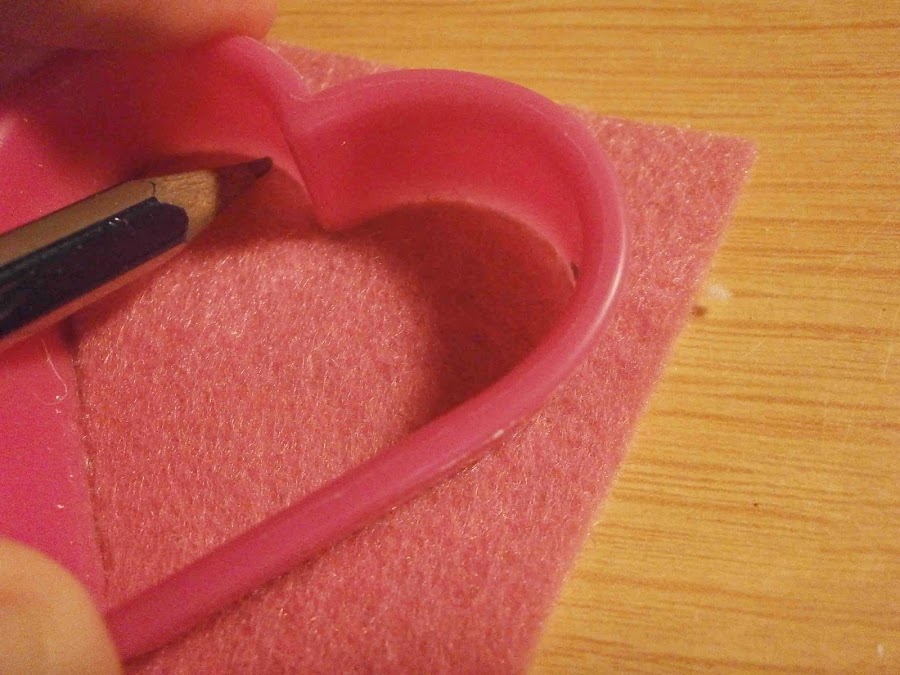 Para hacer la parte de atrás hacemos un corazón de fieltro repasando con un lápiz alrededor del molde, y lo cortamos.