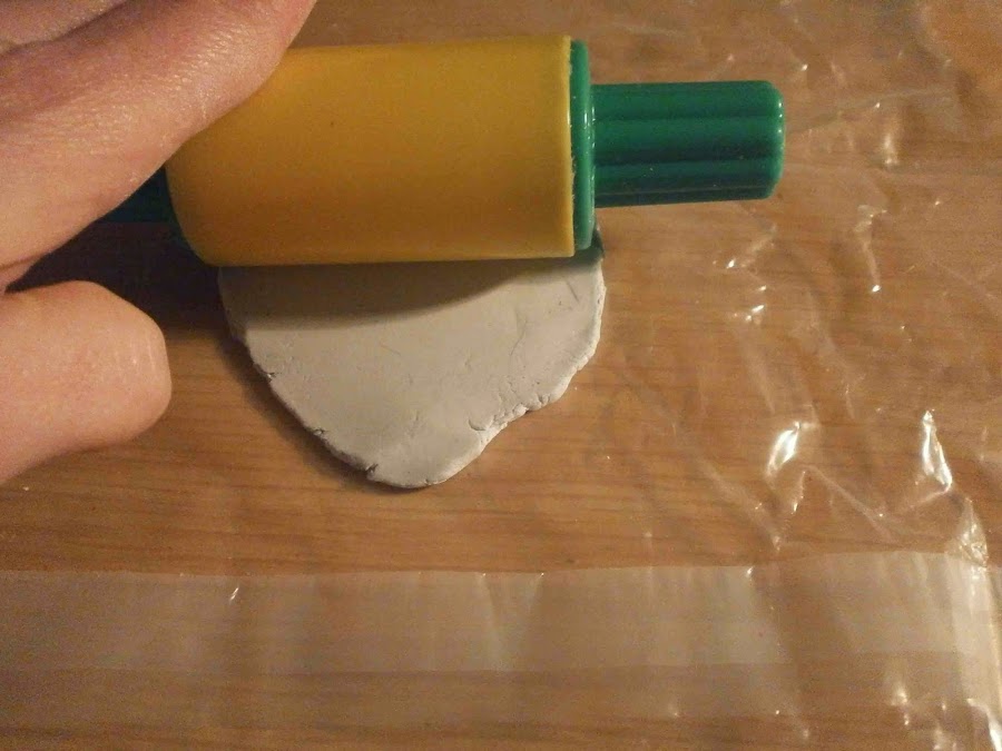 Amasamos bien la pasta de modelar cuando ya este blandita la extenderemos en el plástico para que no se pegue la pasta en la mesa, le pasamos el rodillo dejando la pasta con un borde de 3 milímetros mas o menos.
