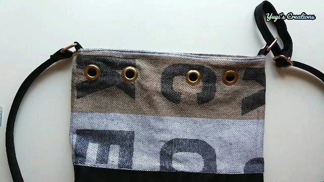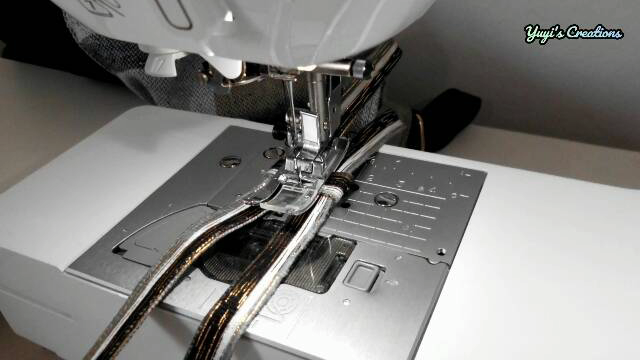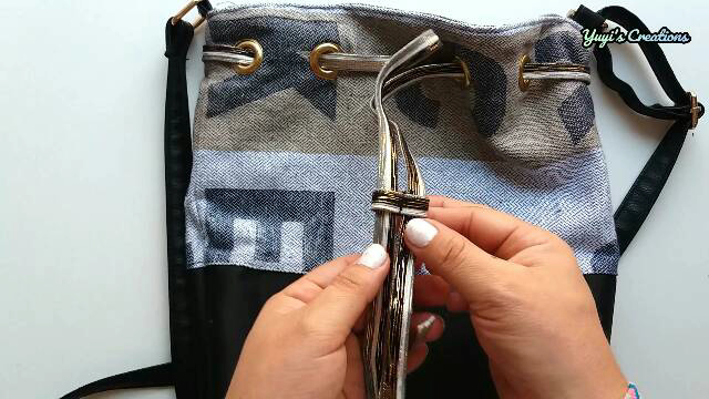 Una vez puestos los ojetes, colocamos la cinta, el cordón o lo que hayas elegido y le ponemos un tope para que no se salga.