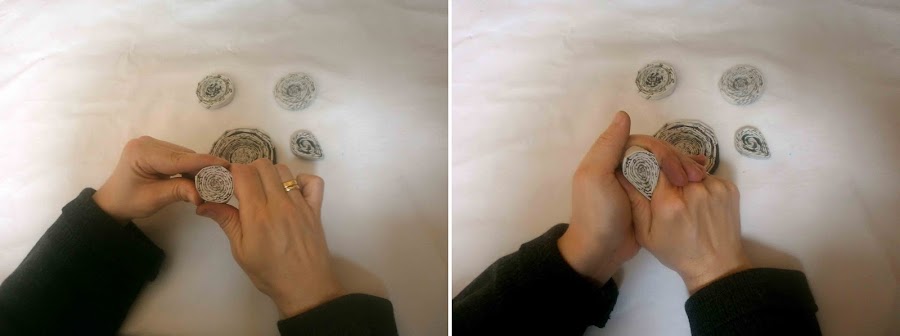 Para las alas y el pico una vez enrollado, se presiona el papel con las manos para hacer la forma de las alas y el pico.