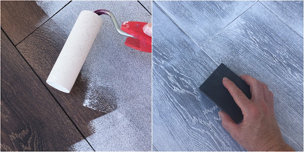 Con un rodillo y pintura a la tiza blanca di una primera mano de pintura.