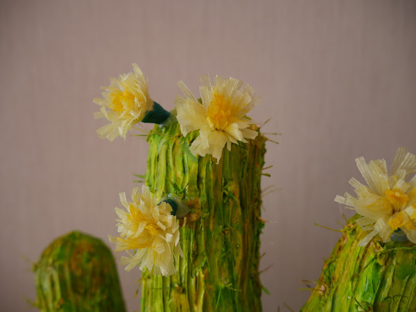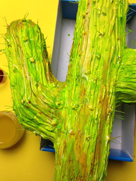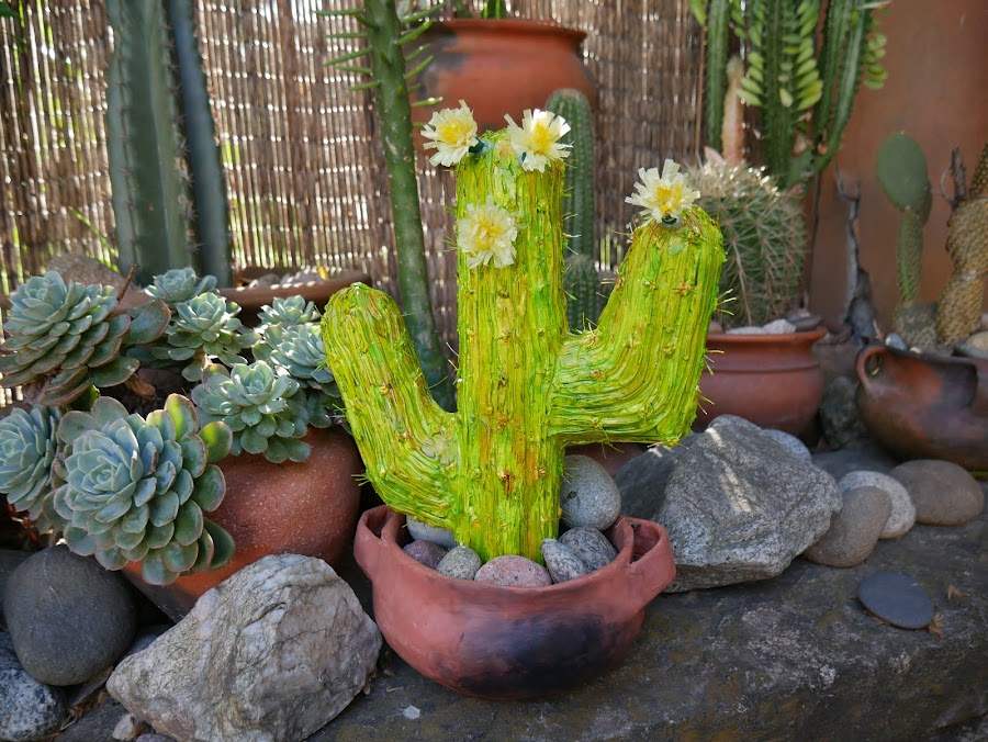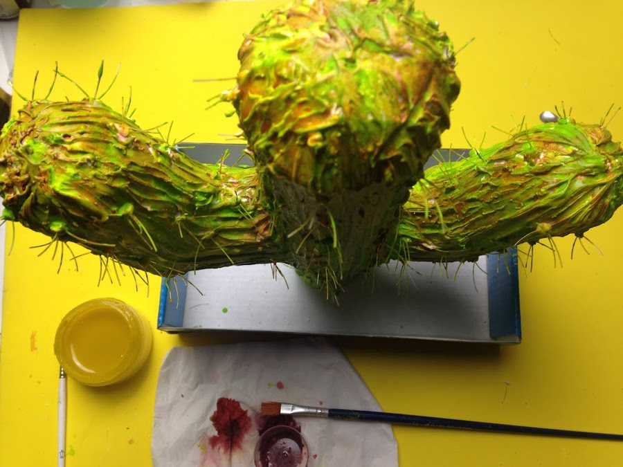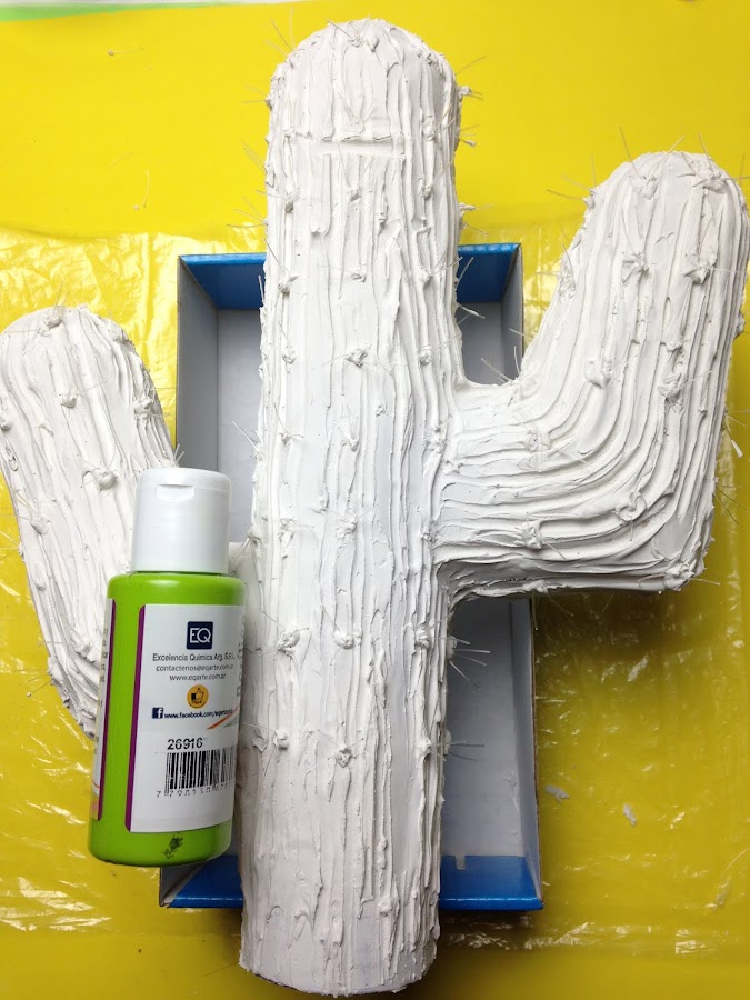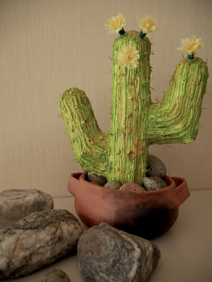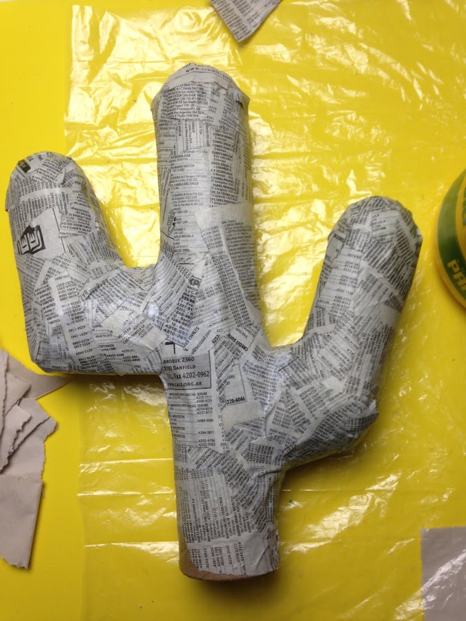 Luego se hace una cartapesta cubriendo con papel toda la superficie del cactus.