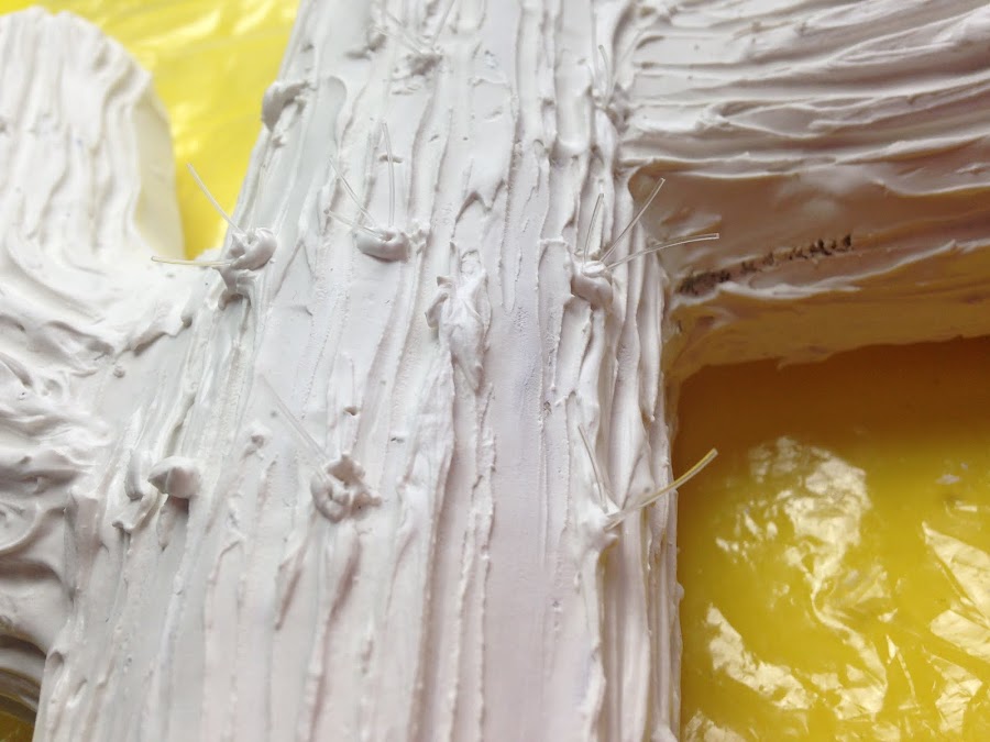 Se cobre de ambos lados con el enduído y se hacen rayas verticales con un palito o un peine a lo largo del cactus