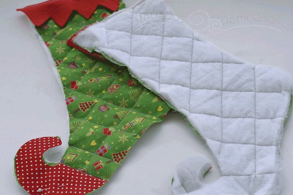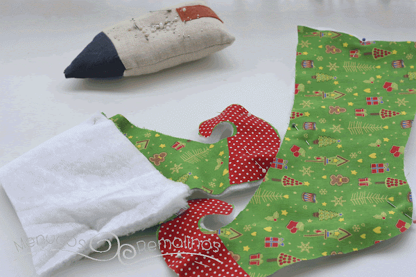 Y como no tenía ningún calcetín navideño de esos que quedan tan bonitos y tan americanos encima de la chimenea, este año me he obligado a coser uno para mis peques, (el año que viene me hago la chimenea, va, jajaja)