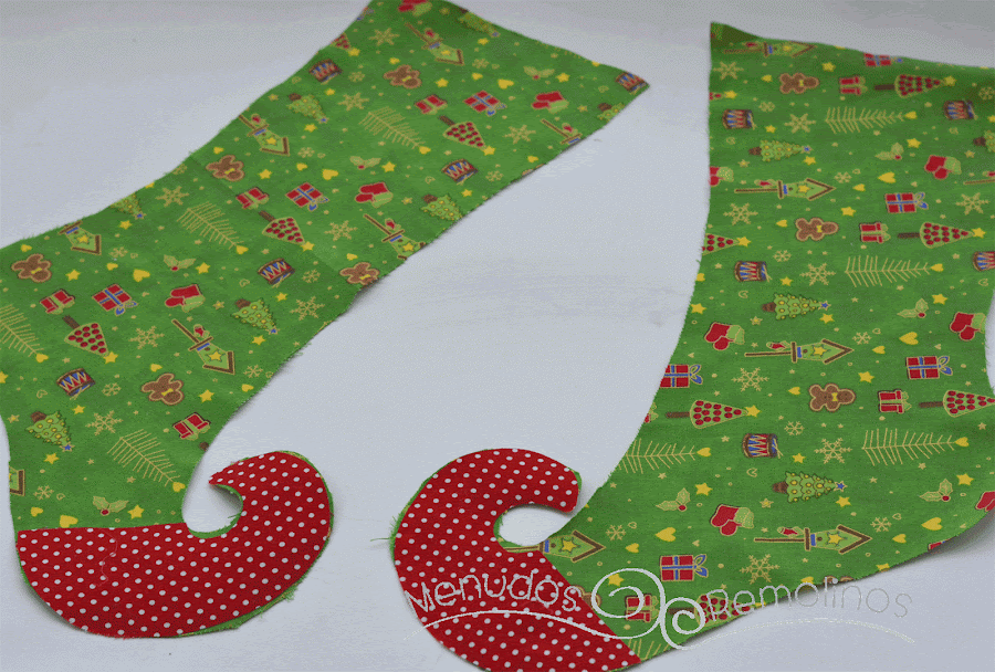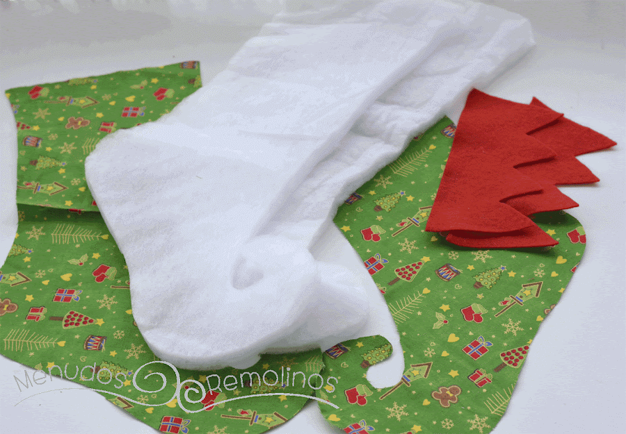 Y como no tenía ningún calcetín navideño de esos que quedan tan bonitos y tan americanos encima de la chimenea, este año me he obligado a coser uno para mis peques, (el año que viene me hago la chimenea, va, jajaja)
