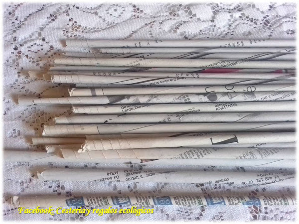 Con los diarios haremos varillas o tubitos de papel semi-gruesos y bofos, muy fáciles de hacer...