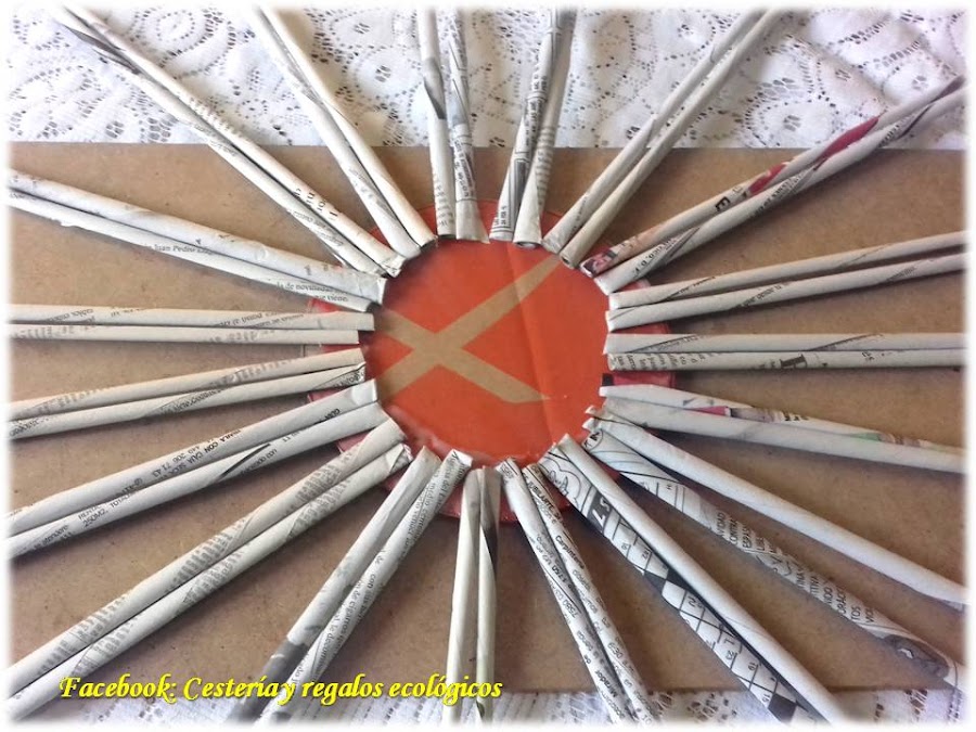 Encima, pegaremos la segunda rueda de cartón y queda listo para empezar a formar el canasto...