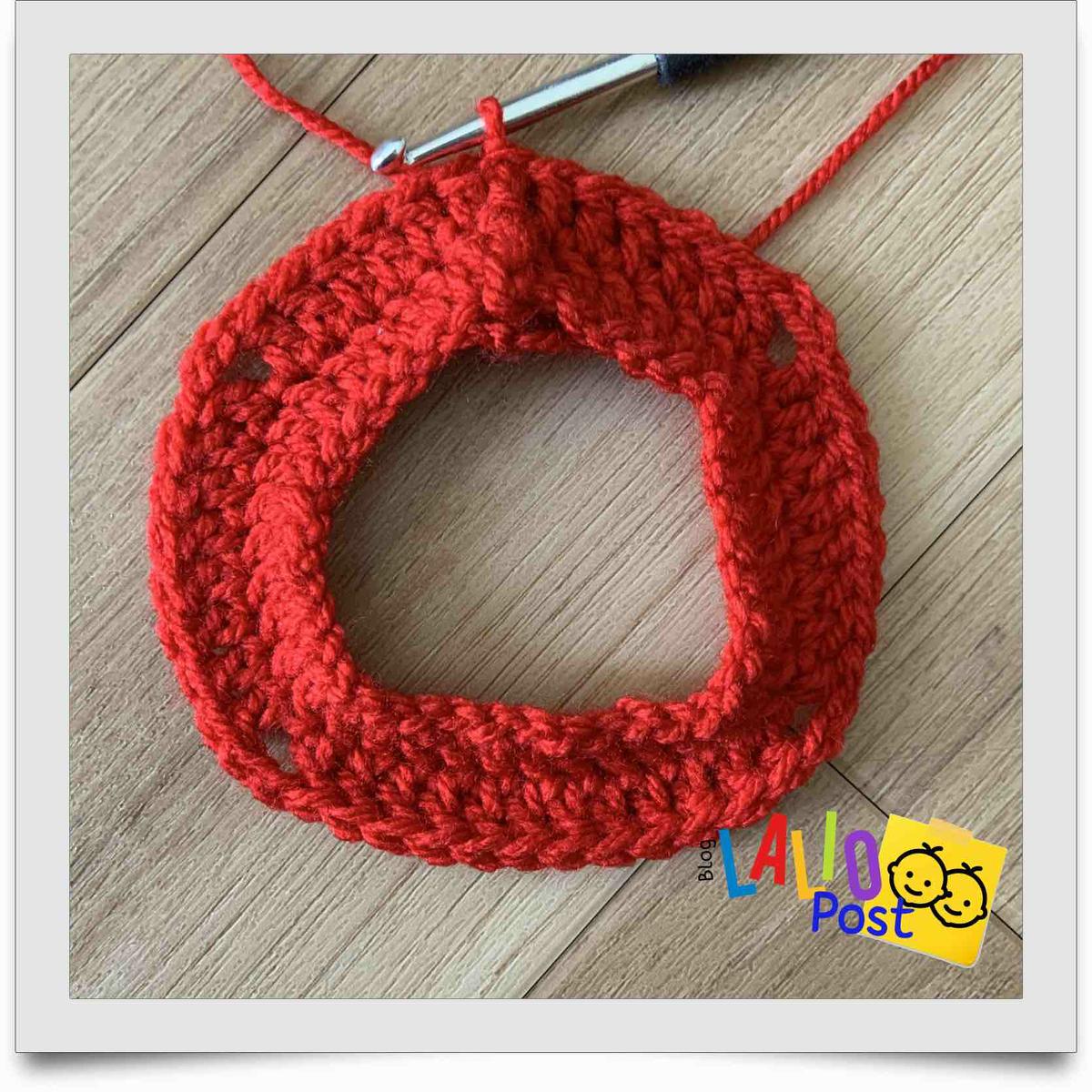 Una vez que tenemos lista nuestra cadena, la cerramos, tomando el primer punto de nuestra cadena y hacemos un punto deslizado. Comenzaremos ahora a hacer la primera fila de nuestro canesú.