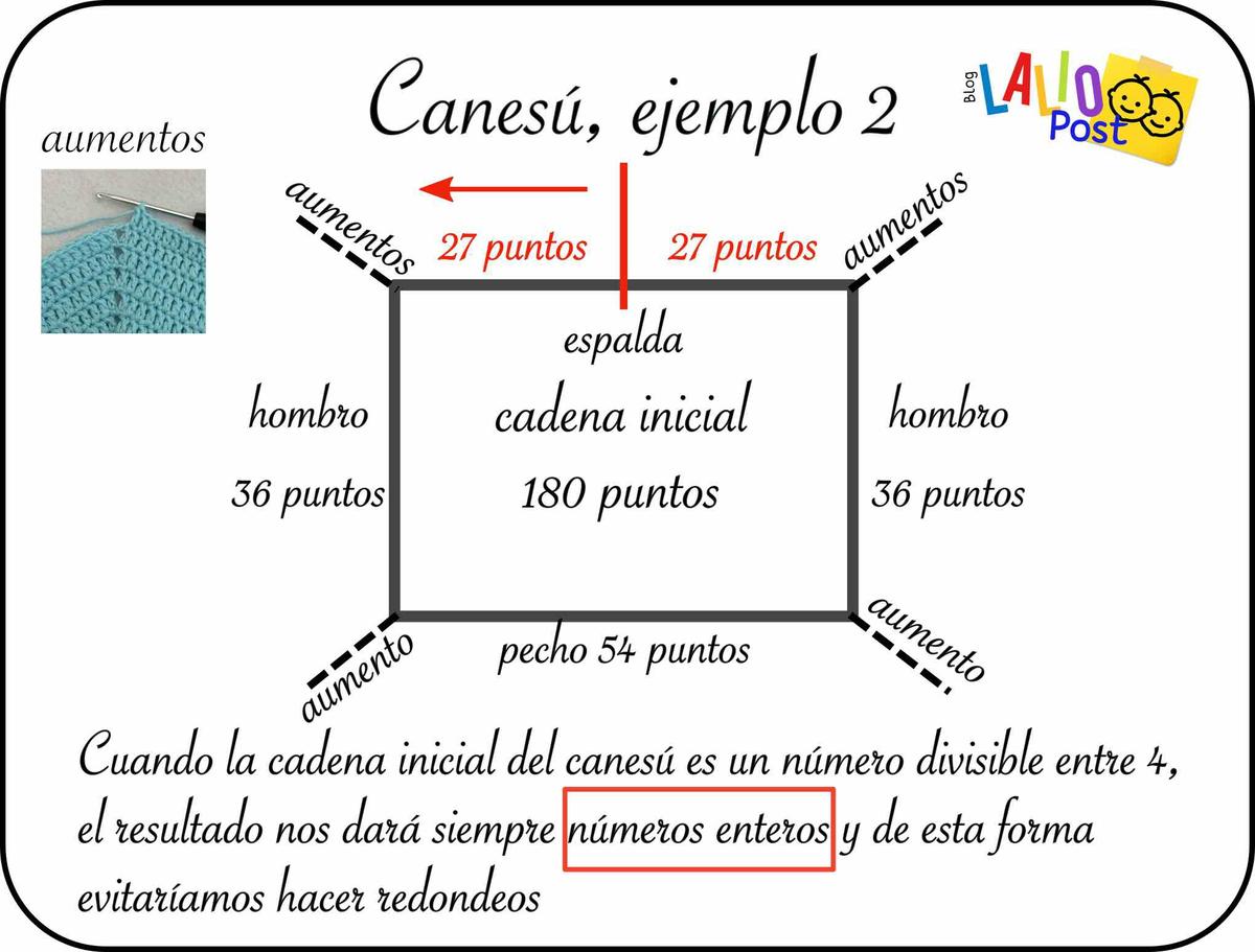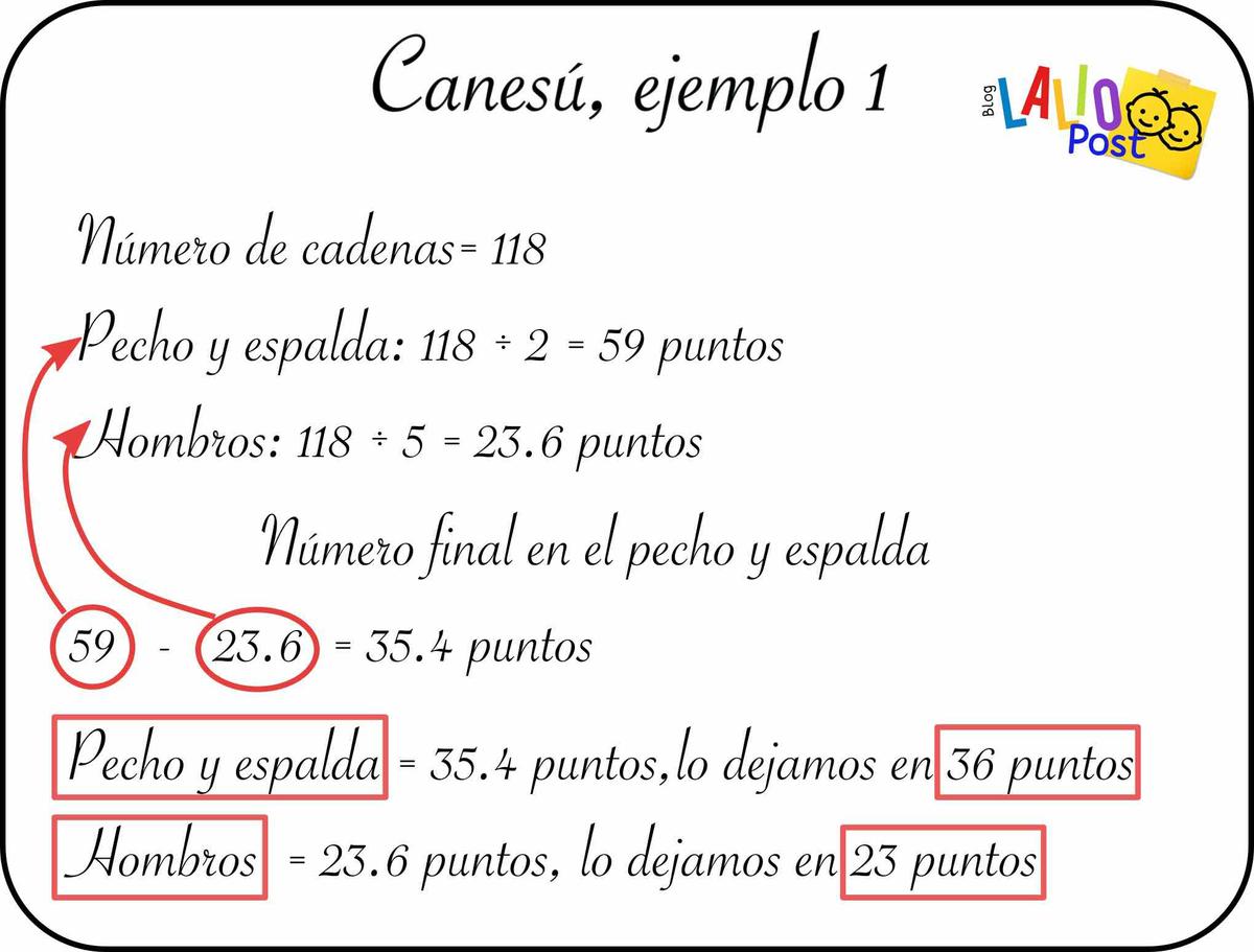 Para el canesú del Patrón de Jersey tejido a crochet para niño/a, la cadena inicial eran 118 puntos. Aplicando la fórmula del recuadro anterior tenemos:Ejemplo 2: cadena inicial con número divisible entre 4